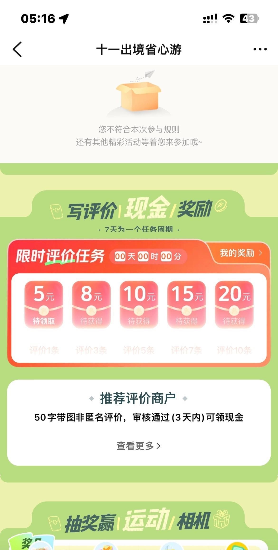 定位-香港 打开大众点评 挂四五分钟 杀后台 再打开 搜索进入活动页面( 十一出境省心游)虚拟定位后 5分钟没出现入口就是号不行