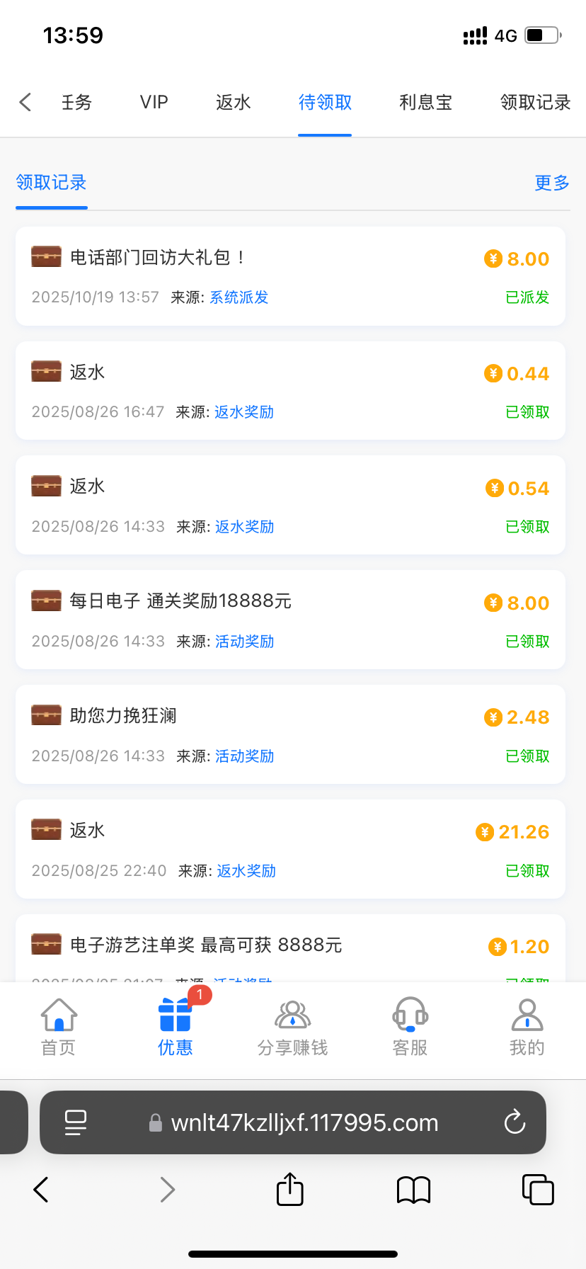 你这个玩了也不少流水,电话彩金才8块钱?