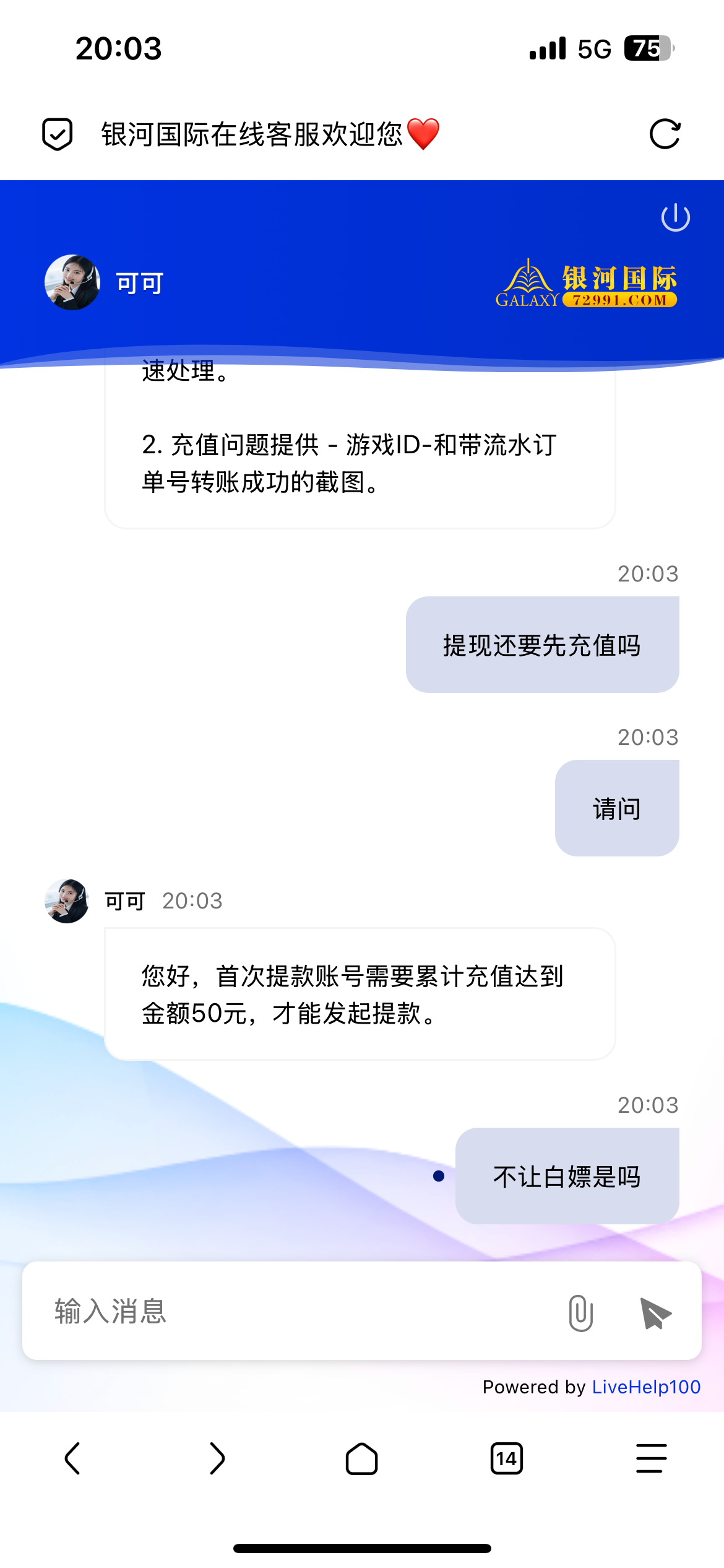 你也是个人才充50怕什么亏也是亏50要是我早充了怕这怕那的赌什么