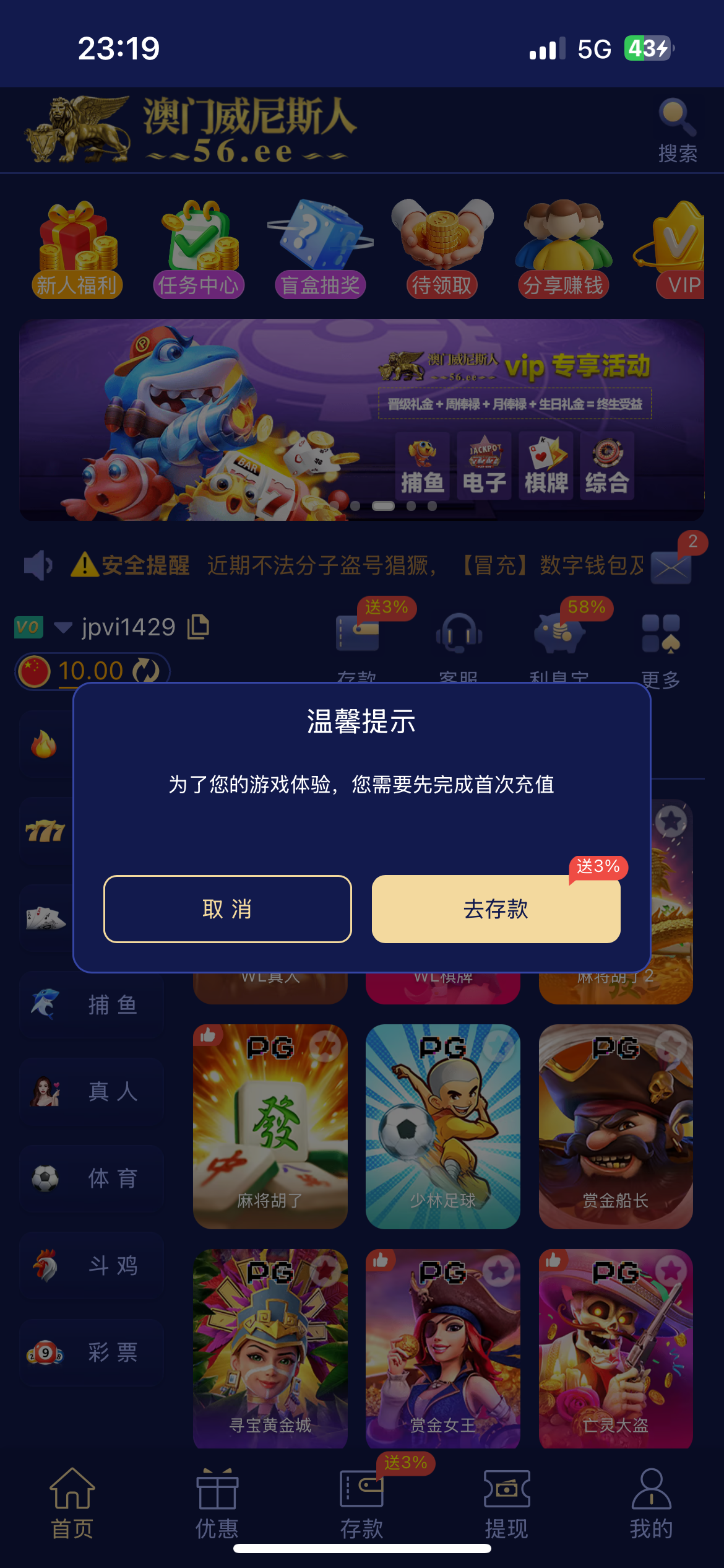 活动那里手机号接码,提款自测要是不够十的话可以在任务里下载APP彩金也可以领,不用充值