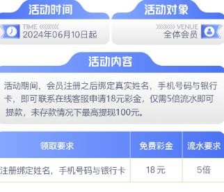 ,完善信息(最低绑个手机号码,跟提款方式),自助申请或联系客服申请彩金。